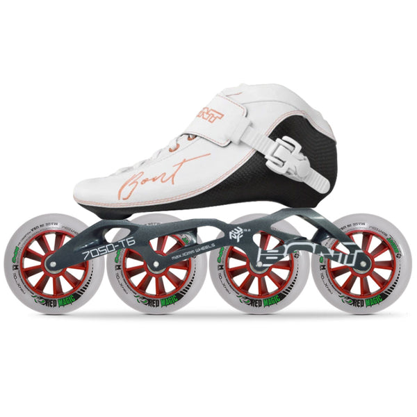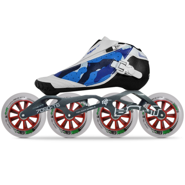 Complete inline speed skates with boots, frames, bearing and spacers. Please enquire about any modifications of a package.